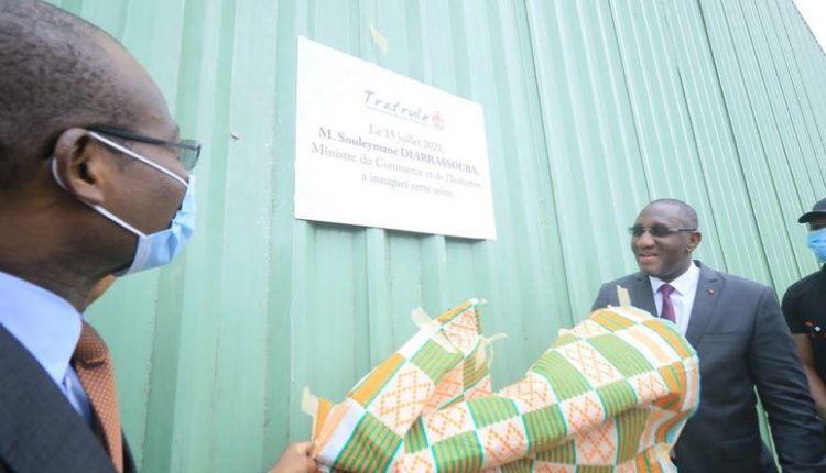 Le ministre du commerce et de l’industrie, Souleymane Diarrassouba a procédé à l’inauguration du premier usine de transformation de fruits et légumes de Trafrule ce jeudi 15 juillet 2021 à N’Douci dans la région de l’Agnéby-Tiassa.